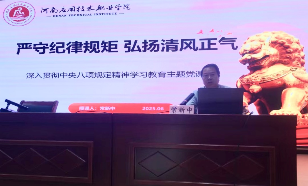 为推动深入贯彻中央八项规定精神学习教育走深走实,6月12日,校党委委员、副校长常新中为威廉官网中国官方网站师生讲授了以“严守纪律规矩,弘扬清风正气”为主题的党课。