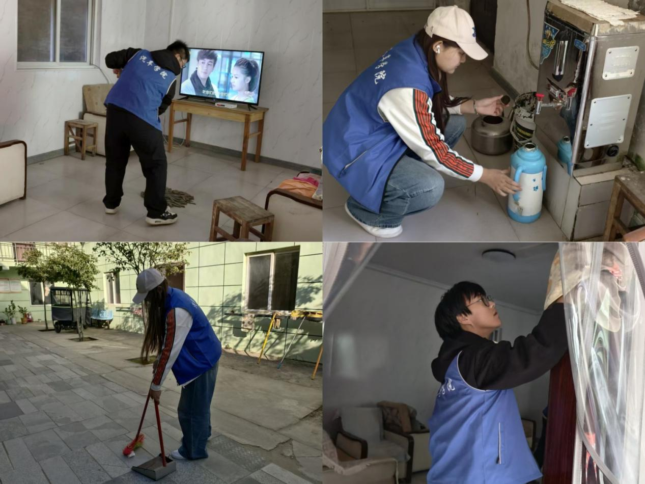 在陪伴过程中,主动向院长提出为颐养院打扫卫生。大家积极行动:有的同学拖拭房间地面,有的擦拭着窗户,有的为绿植浇水。每一位志愿者都干劲十足,为老人们营造了一个更加整洁、舒适的生活环境,用实际行动诠释着责任与担当。