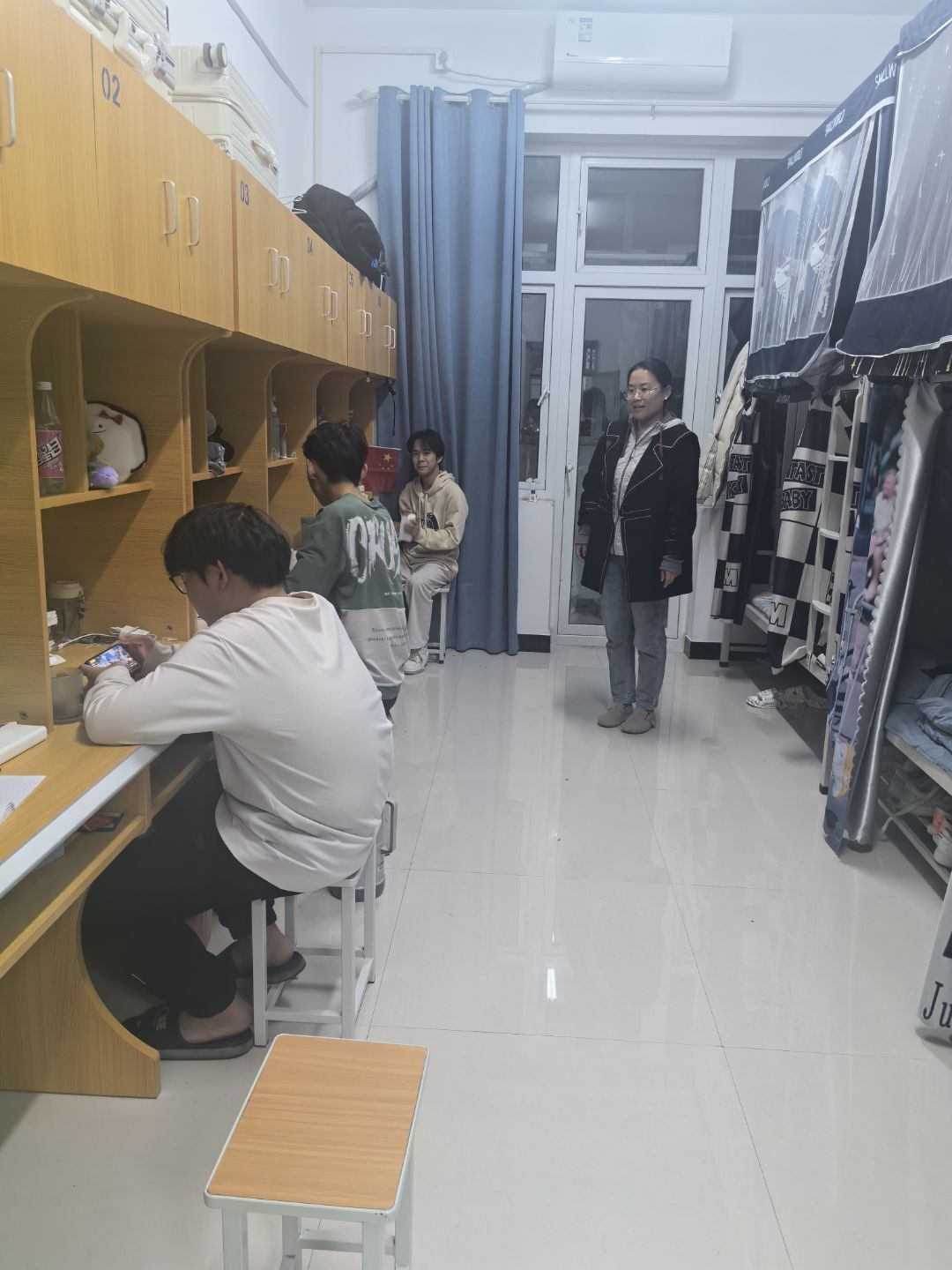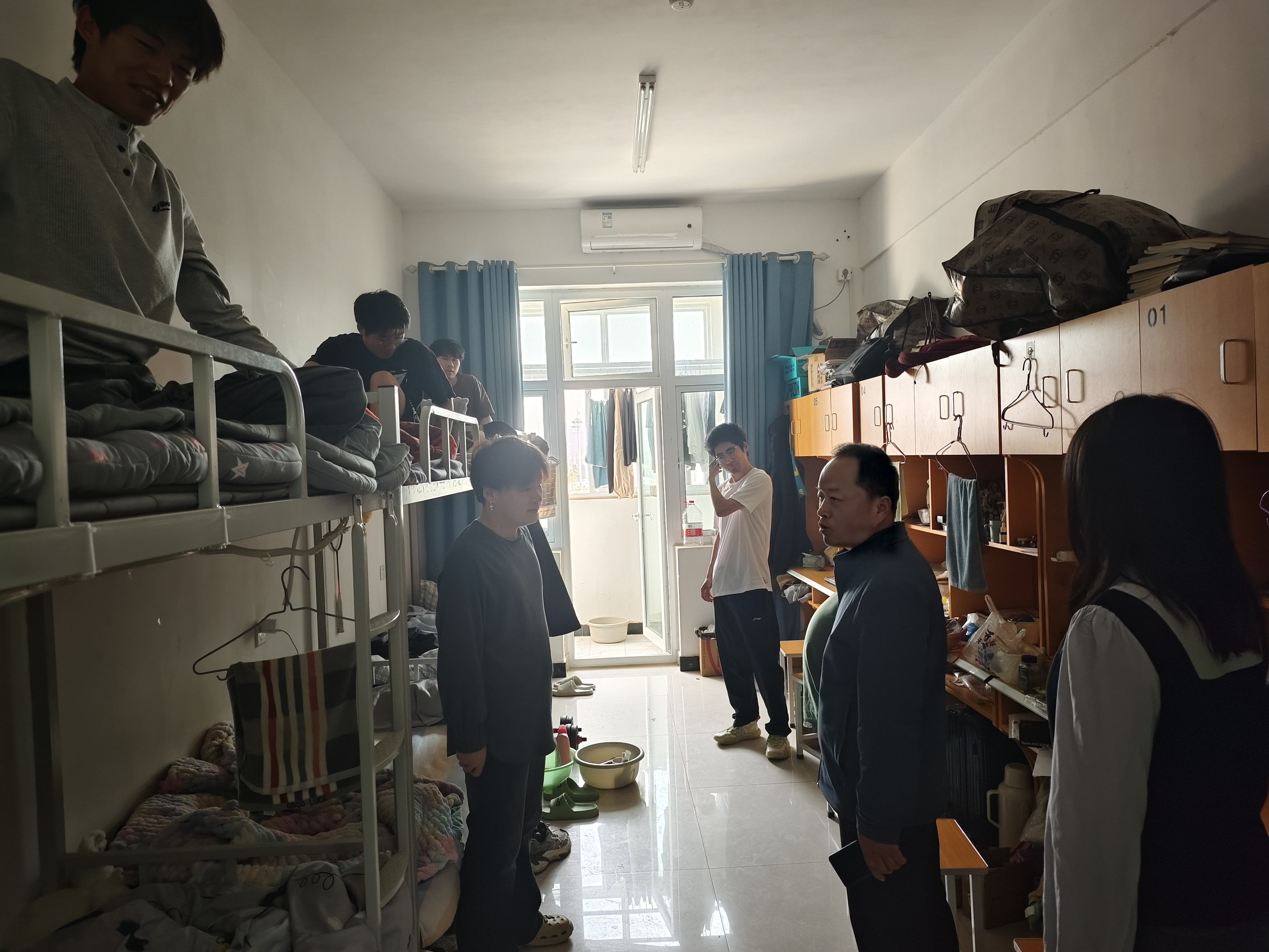 在走访过程中,辅导员们与学生们亲切交流,从日常生活的点滴聊起,逐渐深入到学习压力、人际交往、未来规划等话题。对于那些在宿舍安装床帘的学生,辅导员们特别留意,通过耐心的沟通,试图了解他们背后的想法。床帘虽小,但有时却可能是学生内心世界的一种 “保护屏障”。部分安装床帘的同学表示,这是为了拥有一个相对独立的空间,在学习或休息时不被打扰;也有同学提到,这样能让自己在面对一些情绪波动时,有一个可以 “躲起来” 调整的小天地。辅导员们认真倾听每一位同学的心声,对他们的感受表示理解,并给予了针对性的建议和引导。