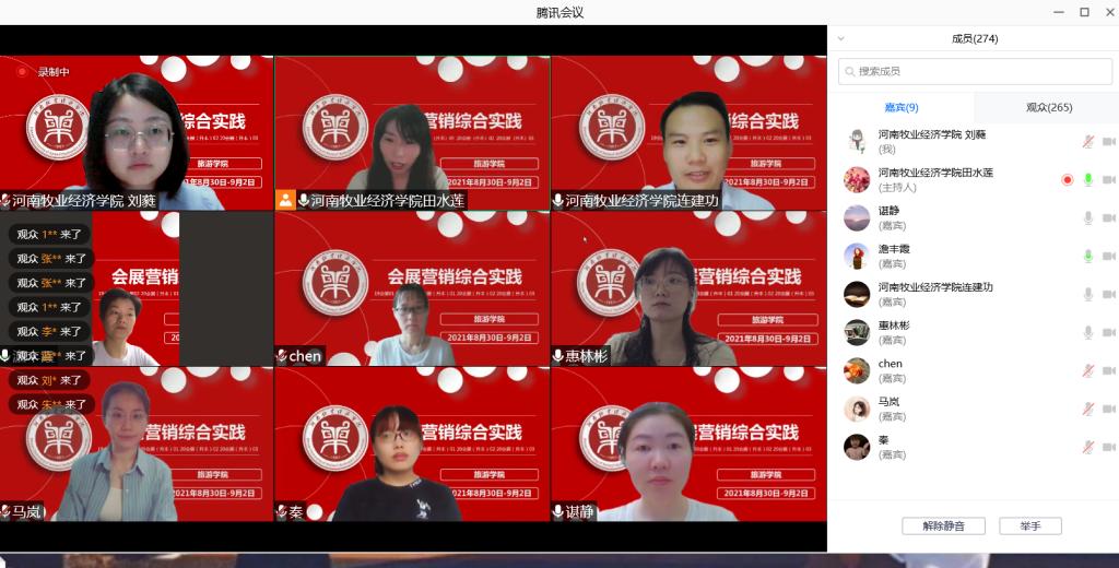 8月30日上午,pg国际电子网站会展经济与管理专业集中实践教学《会展营销综合实践》动员会在腾讯会议线上平台开启,会展经济与管理教研室全体老师,2019级会展、2020级会展升本5个班的全体学生参加了此次动员,活动由课程主讲田水莲老师主持。