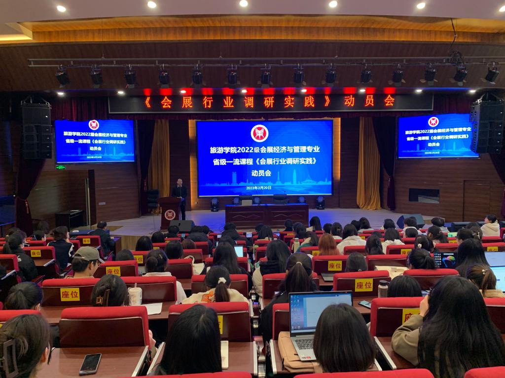 320上午pg国际会展经济与管理专业省级一流课程《会展行业调研实践》在一号教学楼合100报告厅召开实施动员会,教学副院长王中雨、会展教研室主任连建功、教研室部分指导教师和2022级会展0102班学生全程参与。