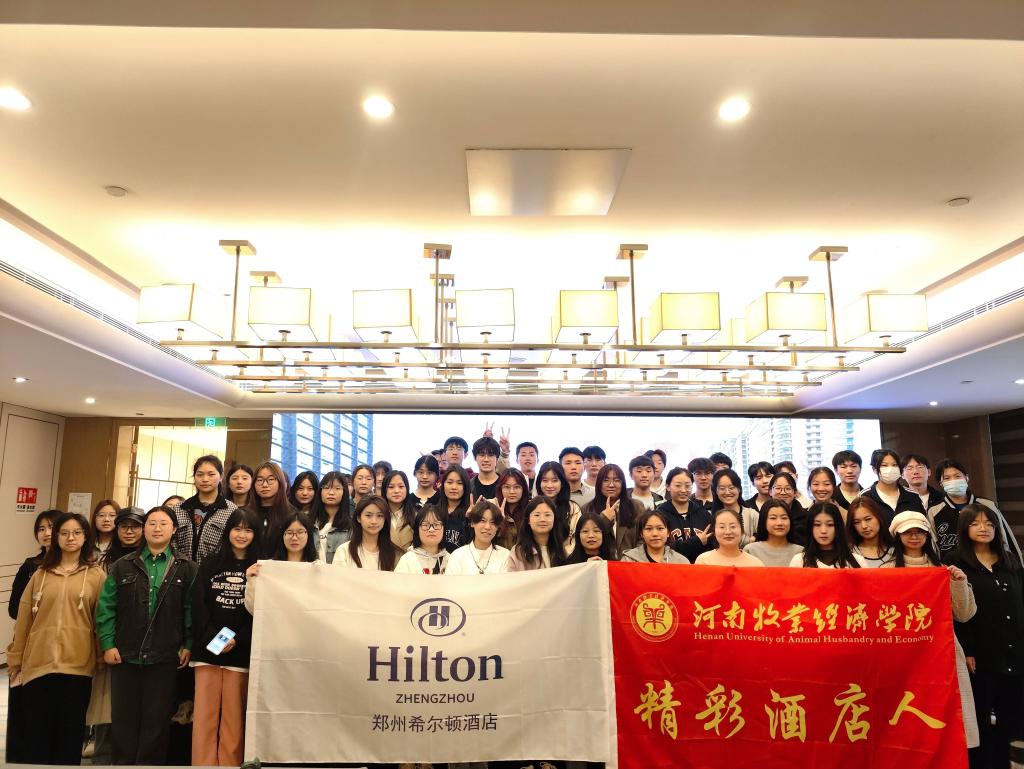 2023421日,pg国际电子网站2022级酒店管理专业学生在酒店管理教研室主任张众的带领下前往郑州希尔顿酒店开展行业实训调研活动。