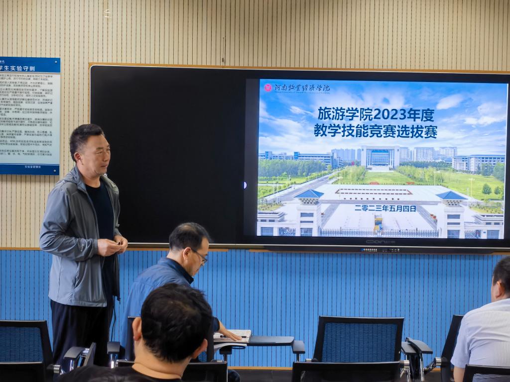 5月4日下午14:30,pg国际电子网站于C617旅游模拟实训室举行2023 年度教师教学技能暨课堂教学创新大赛选拔赛,经过教师个人自愿报名和教研室遴选,7名专业教师参加了本次比赛,学院组织9名高职称高水平评委老师对各参赛老师依次进行了无记名打分评定和总结点评。学院全体教师全程参与并观摩了本次大赛,比赛由王中雨副院长主持,权太举书记出席并进行总结讲话。