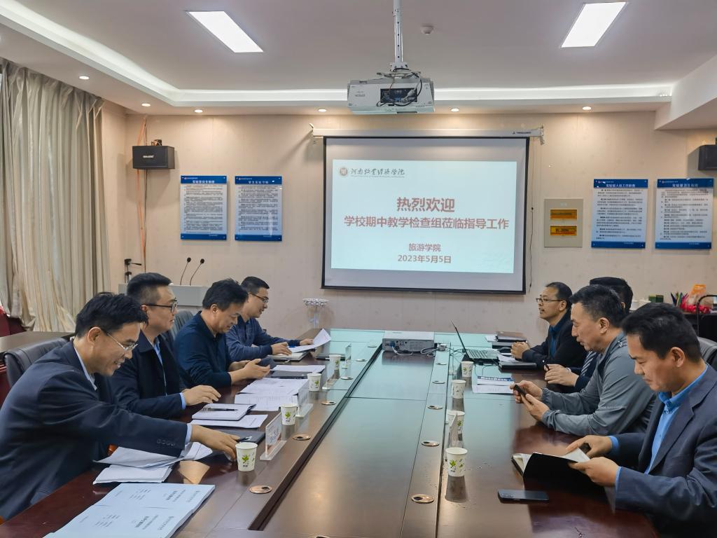 首先,王德静院长代表pg国际电子网站对校检查组致以最热烈的欢迎,并感谢学校对学院工作给予的充分关注和重视。王鑫磊处长代表检查组对本次工作程序和要求进行了讲话。随后,王中雨副院长从学院近期教学工作组织管理情况、课程教学工作开展情况、各专业实践教学情况、学院开展访企拓岗工作情况、本科毕业论文中期检查情况等九个方面进行了汇报。检查组听取汇报并检查了相关材料,对试卷批改、论文进度等方面进行了重点反馈与交流。会上,旅游管理专业、会展经济与管理专业及酒店管理专业的三个本科专业教研室主任还进行了专业自评汇报。