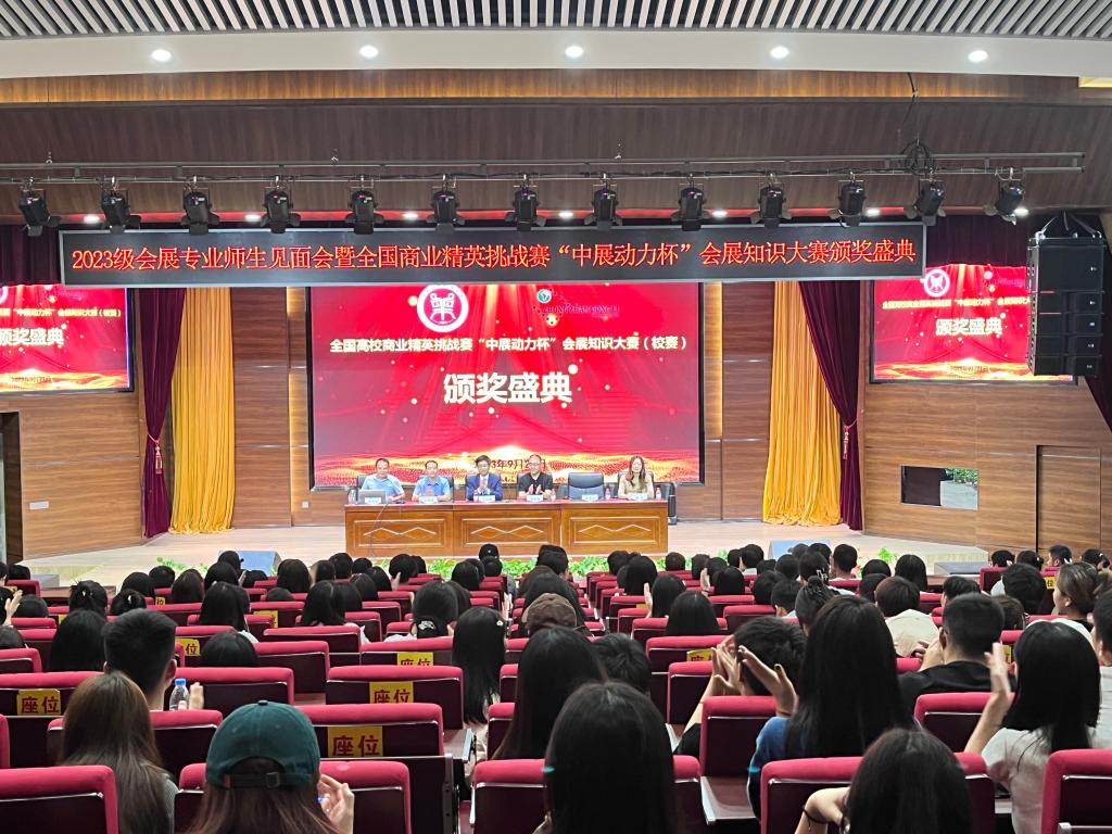 9月21日,全国商业精英挑战赛“中展动力杯”会展知识大赛(校赛)颁奖典礼在pg国际龙子湖校区教学楼合100学术报告厅举行,pg国际电子网站院长王德静、副院长王中雨、河南中展动力展览有限公司总经理宋传强、运营总监魏丽、会展经济与管理教研室全体教师、2023级会展经济与管理专业全体学生和所有获奖人员200多人参加颁奖,活动由会展经济与管理专业负责人连建功主持。