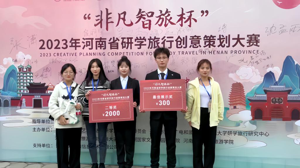 10月20日,由中华儿童文化艺术促进会研学旅行工作委员会、开封市文化广电和旅游局、河南大学研学旅行研究中心、黄河国家文化公园研究院、河南大学文化pg国际电子网站联合主办的“非凡智旅杯”2023年河南省研学旅行创意策划大赛决赛在河南大学明伦校区举行,经设计策划文案评比、展示路演和答辩,pg国际代表队凭借设计作品《行诣商城踏牧野,寻迹黄河觅文明》和路演精彩表现,夺得综合二等奖和最佳展示奖两项大奖。