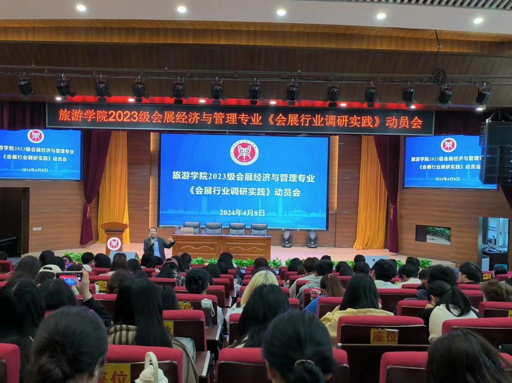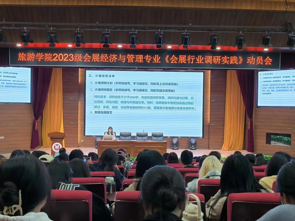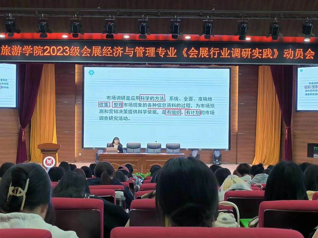 4月8日上午,pg国际会展经济与管理专业省级一流实践课程《会展行业调研实践》项目在一号教学楼合100报告厅顺利启动,学院教学副院长王中雨、会展经济与管理教研室全体老师及2023级会展经济与管理专业群体学生130多人参加动员会。