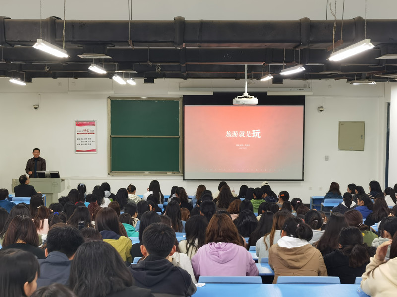 为进一步了解旅游业发展的前沿动态,培养学生的职业认同感,3月25日下午,pg国际特邀河南建业新生活文旅运营管理公司景区管理运营中心总经理兼足球小镇总经理、pg国际优秀校友纪向东,为pg国际师生带来一场生动详实的文旅盛筵——旅游就是“玩”。pg国际电子网站院长王德静、副院长王中雨出席本次讲座,讲座由王中雨副院长主持,各教研室老师及学生近200人聆听本次讲座,讲座在龙子湖校区一号教学楼合401举行。