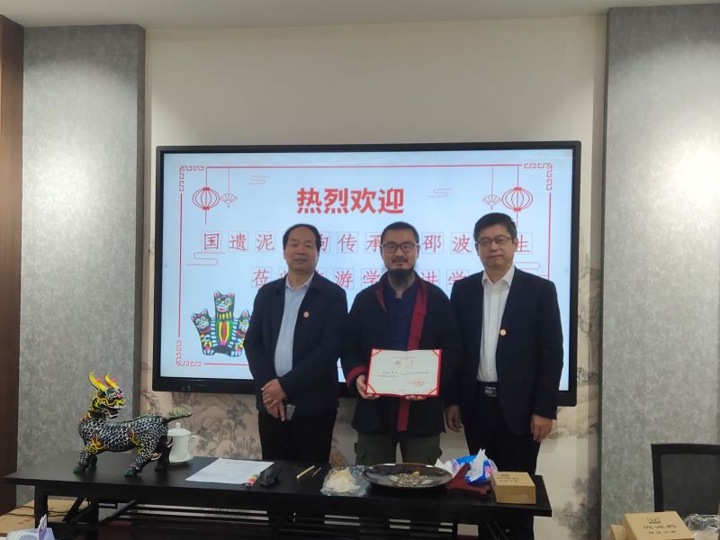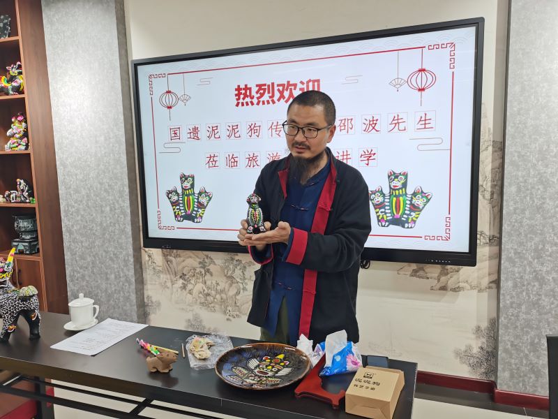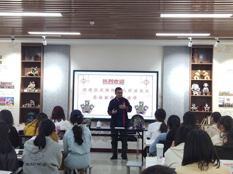 为进一步提升pg国际学生的文化素养,拓展文化知识面,学习和传承非物质文化遗产,积极传播文化正能量,4月28日下午,pg国际特邀国家级非物质文化遗产淮阳泥泥狗传承人邵波先生,为pg国际学生做题为“小小泥泥狗 蕴含大文化”的专题讲座。pg国际电子网站党委书记李喜民、院长王德静、党委副书记陈明、团委副书记崔克兵及19级文创旅游班学生到场聆听。讲座在pg国际大美中原文旅展示中心举行。