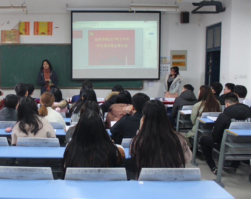 12月11日上午,在旅游模拟实验室旅游教研室党支部书记王中雨做讲了题为《十九大报告解读——生态文明:绘就美丽中国新画卷》的党课;12月11日下午,在409会议室酒店教研室党支部书记张少飞做讲了题为《学习十九大,踏上新征程》的党课;12月25日下午,在景区教研室景区教研室党支部书记陈道山做讲了题为《党的先进性》的党课;12月25日下午在409会议室行政办公党支部书记陈明做讲了题为《全面理解和准确把握新时代党的建设总要求》的党课;12月26日中午1号教学楼A305教室学生党支部书记祝聪楠做讲了题为《学习十九大精神,做新时代的合格党员》的党课。