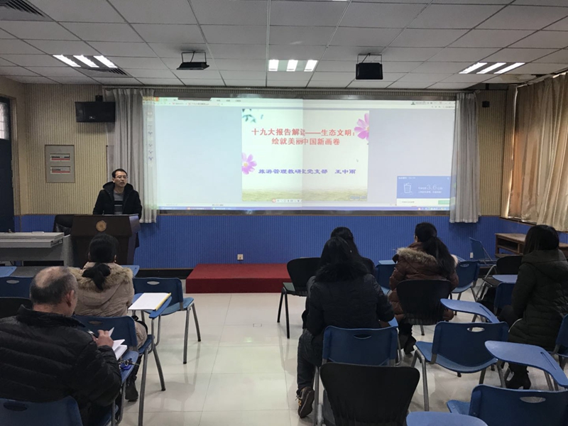为认真学习宣传贯彻党的十九大精神,按照《旅游管理系学习宣传贯彻党的十九大精神实施方案》,近期旅游管理系各支部开展了支部书记讲党课活动,各支部集中学习党的十九大精神。系党政领导班子成员以普通党员的身份参加了所在支部的学习。