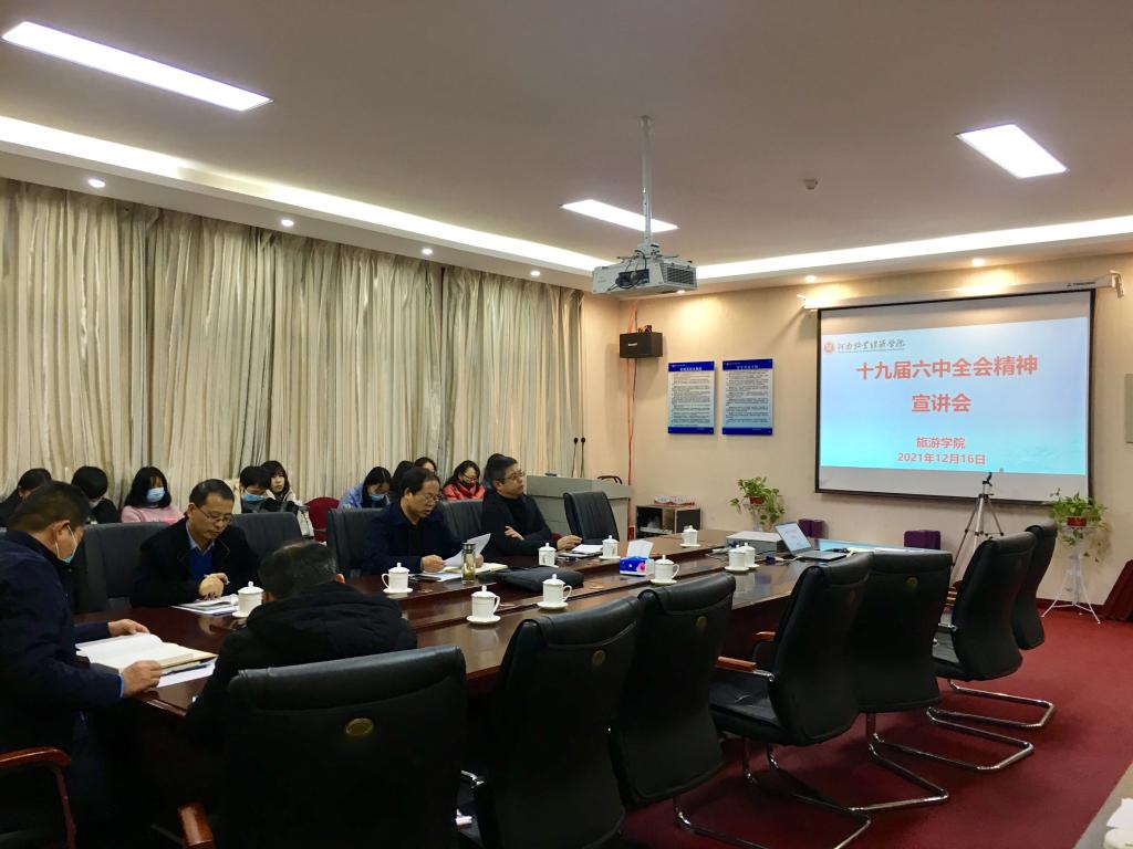 进一步深入学习贯彻党的十九届六中全会精神,12月16日下午,pg国际电子网站举行党的十九届六中全会精神第三场宣讲会院党委书记李喜民主讲,学院全体教师参加学习。