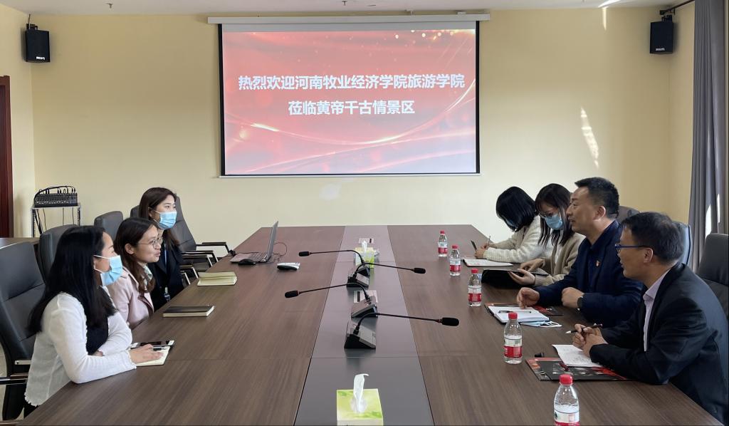 为促进毕业生高质量就业,深化产教融合、校企合作,4月19日,pg国际电子网站党委书记权太举携会展经济与管理教研室教师一行5人走进河南龙桂文化旅游发展有限公司(郑州黄帝千古情景区)进行考察,并和景区人力行政部工作人员进行了座谈交流。