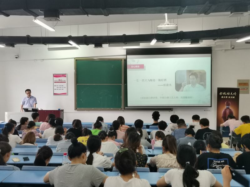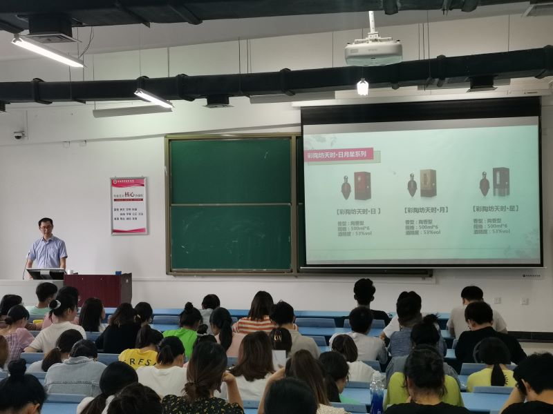 本次宣讲会主要分为四个环节。首先,王经理以“关于白酒的知识了解多少”为切入点,与现场同学们进行交流互动,学生们踊跃发言,分享自己所了解的白酒文化;接下来,王经理播放了河南仰韶酒业有限公司的企业宣传视频。该企业是豫酒的龙头企业与领头羊,也是豫酒中唯一的“河南省质量标杆”企业,公司秉承“为中国白酒引领世界消费持续精进,使仰韶文化成为影响人类的伟大智慧”的企业愿景,矢志不渝抓科研、深耕市场创品牌;随后,王经理为学生们介绍仰韶酒业彩陶坊等酒文化,企业彩陶坊产品系列以及设计来源等。企业主打产品“仰韶彩陶坊酒”,被中国白酒权威专家组评定为中国白酒的第十三种香型——中国陶融型白酒,树立起了豫酒的品类标识;最后,王经理为在场学生介绍了该企业现招聘岗位、岗位要求、岗位职责以及待遇等方面的大致情况,主要招聘岗位有管培生、人事专员、销售内勤、文案策划等。