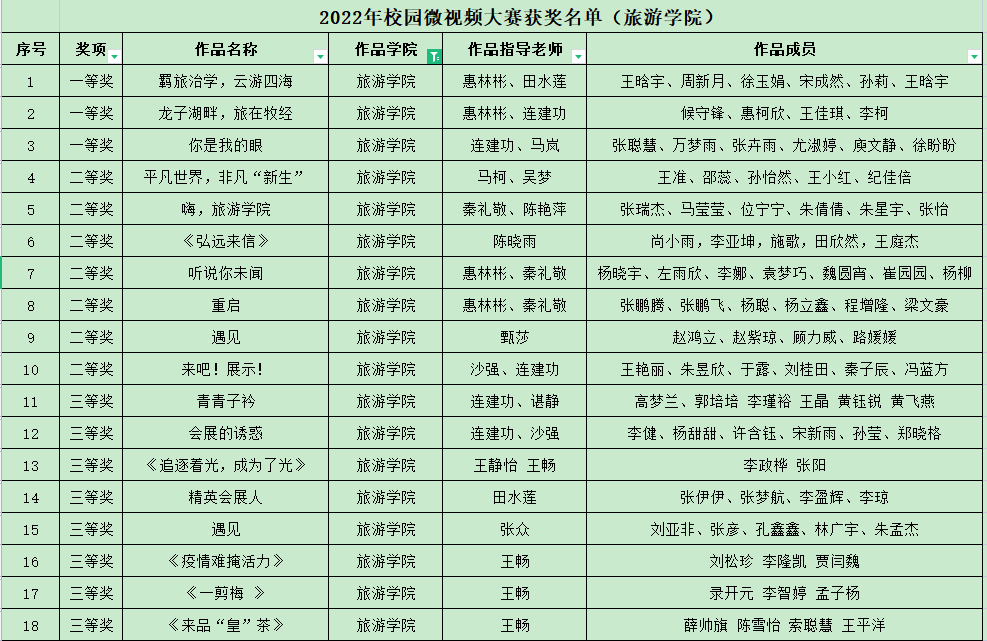 近年来,pg国际电子网站依托会展、旅游、酒店积极探索“以赛促教、以赛促学、赛教融合”的基于多元项目驱动的人才培养模式,创新实践教学理念,以多元项目驱动理念构建课程体系,探索教学改革,取得显著成效。本次校园微视频大赛会展教研室老师依托专业创意活动综合实践教学项目,开拓思路,创新方式,引导学生进行创意设计和视频制作,提交作品25部,其中10部作品分获一、二、三等奖,获奖比例达40%,充分展现了学生扎实的专业技能、良好的精神风貌和pg国际专业教学改革的成效(供稿:惠林彬)。