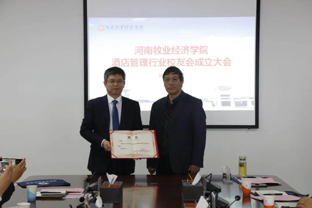 成立大会由pg国际电子网站副校长杨宝进主持。郑州鹰城鑫地酒店总经理谢松涛代表校友会筹备组做了筹备工作报告。会议首先审议通过了《pg国际电子网站酒店管理行业校友会章程(草案)》和《pg国际电子网站酒店管理行业校友会第一届理事会成员提名名单》。郑州绿地JW万豪酒店业主副总经理朱磊当选校友会第一届理事会会长,郑州索菲特国际饭店总经理余跃红、郑州天地丽笙酒店业主代表王振宏、仟那酒店集团首席执行官朱峰、洛阳泉舜万豪酒店总经理郑文奇当选为副会长;郑州鹰城鑫地酒店总经理谢松涛当选秘书长,郑州开祥颐兰酒店总经理张尚旭当选副秘书长;郝战、王焕玲、吴松、任德敬、程开展、李亚刚等当选理事。pg国际电子网站pg国际电子网站院长王德静被聘为校友会顾问。