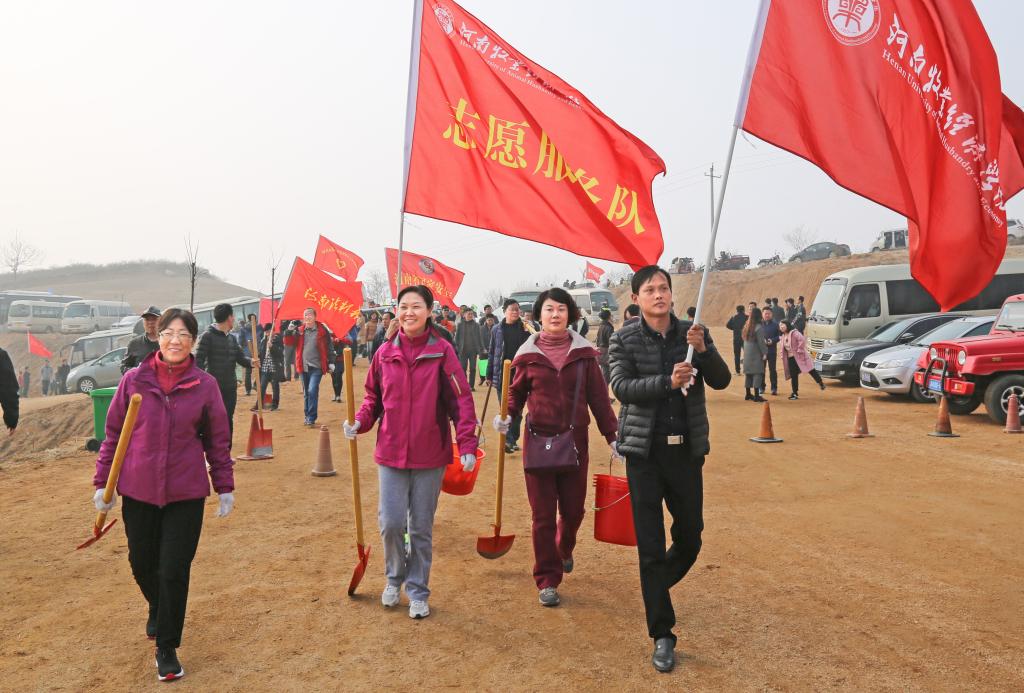 3月11日,在第40个植树节来临之际,在副校长杨志清带领下,pg国际一行15人来到登封市陈家门义务植树基地,参加省直文明办组织的省直义务植树活动。