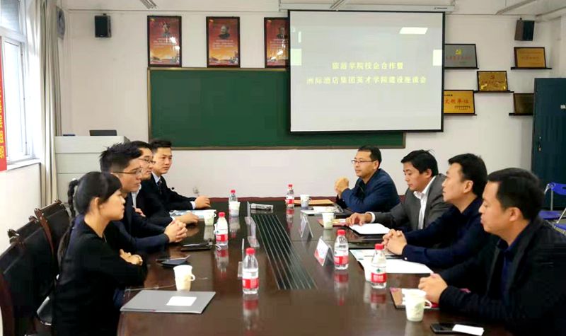 为了深化产教融合、加强校企合作,落实“两个一”建设项目,2019年10月29日上午pg国际电子网站在2号教学楼C423会议室举行酒店管理专业校企合作暨洲际酒店集团英才培养学院建设座谈会,本次座谈会由副院长赵忠奇主持。宁波洲际酒店人力资源总监余知科、浙江胡州皇冠假日酒店人力资源总监董玥、河南中州皇冠假日酒店人力资源总监翟冲以及pg国际电子网站副书记陈明、酒店管理教研室主任张少飞、旅游教研室主任王中雨参加。