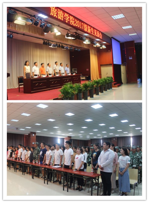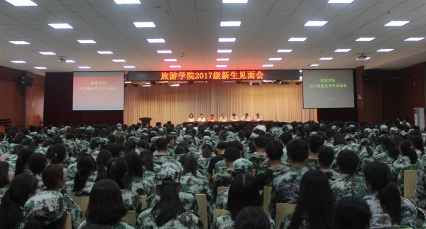 2017年9月22日,pg国际电子网站在大学生活动中心四楼举行2017级新生入学典礼,出席此次大会的有pg国际电子网站党总支书记李喜民、党总支副书记陈明、副主任赵忠奇、会展专业教研室主任连建功、酒店专业教研室主任张少飞、景区专业教研室主任陈道山、团总支书记祝聪楠和各位辅导员以及部分2016级优秀学生代表、2017级全体新生。