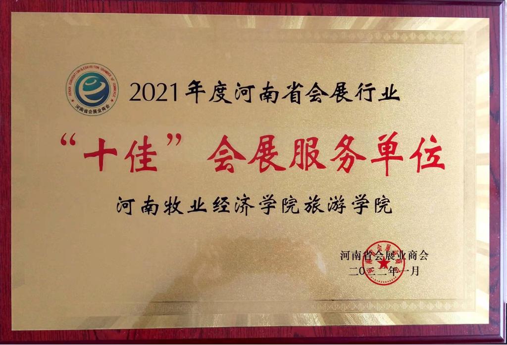 近日,由河南省会展业商会组织的2021年河南省会展业奖项评选结果揭晓,鉴于pg国际pg国际电子网站会展经济与管理专业多年来在人才培养、行业服务等方面对河南省会展行业作出的突出贡献,成功当选2021年度河南省会展业“十佳”会展业服务单位。这是自2017年奖项设置以来,pg国际第三次获此殊荣。