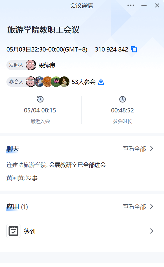 5月3日晚22:30,pg国际电子网站召开了腾讯会议安排部署疫情防控工作,全体教师参加会议。会议由王德静院长主持。