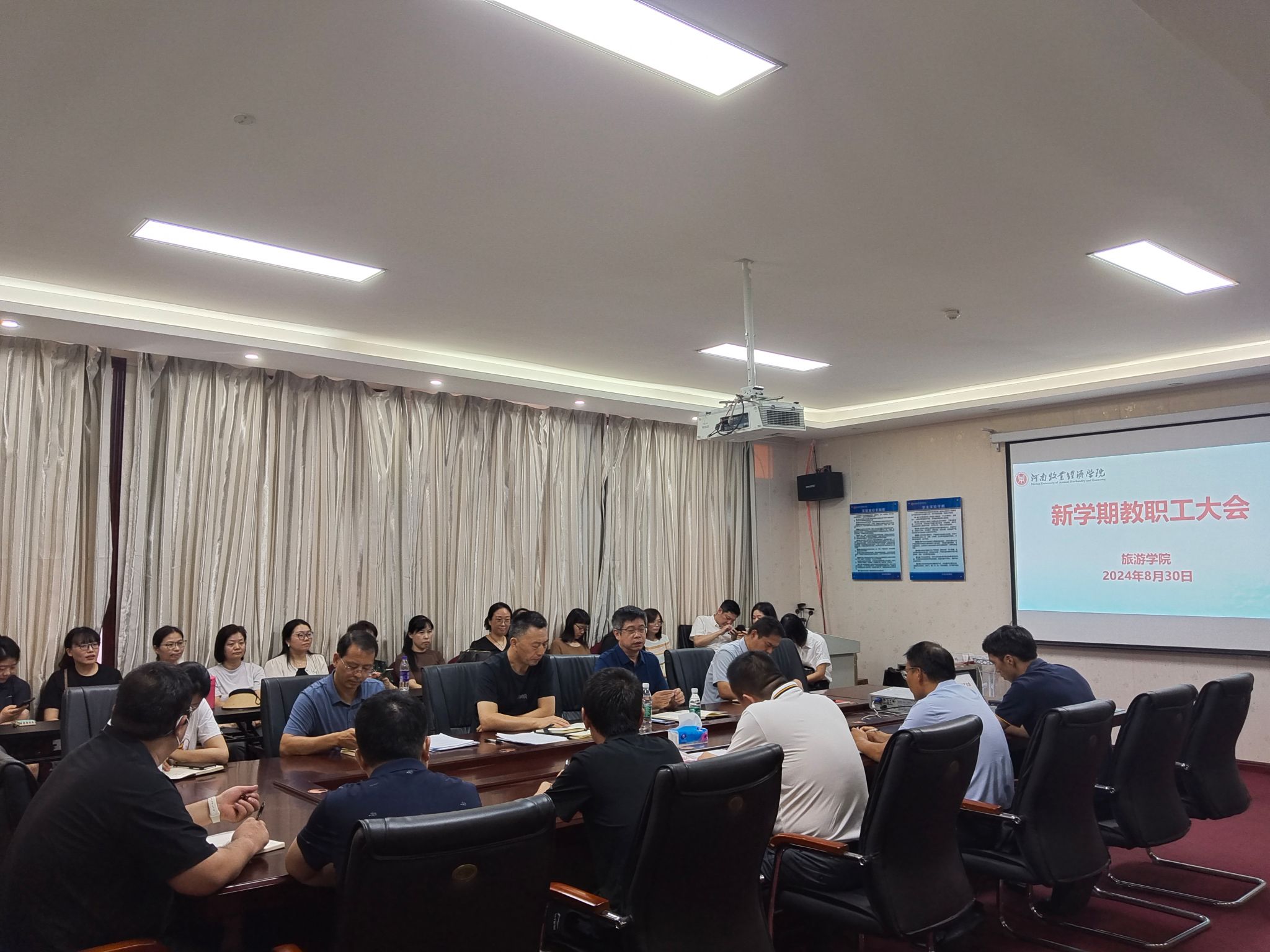 8月30日上午,pg国际电子网站在二号楼C423议室召开新学期全体教职工大会,传达学校2024年秋季学期中层干部会议精神,安排部署新学期工作。会议由院长王德静主持,全体教职工参会。