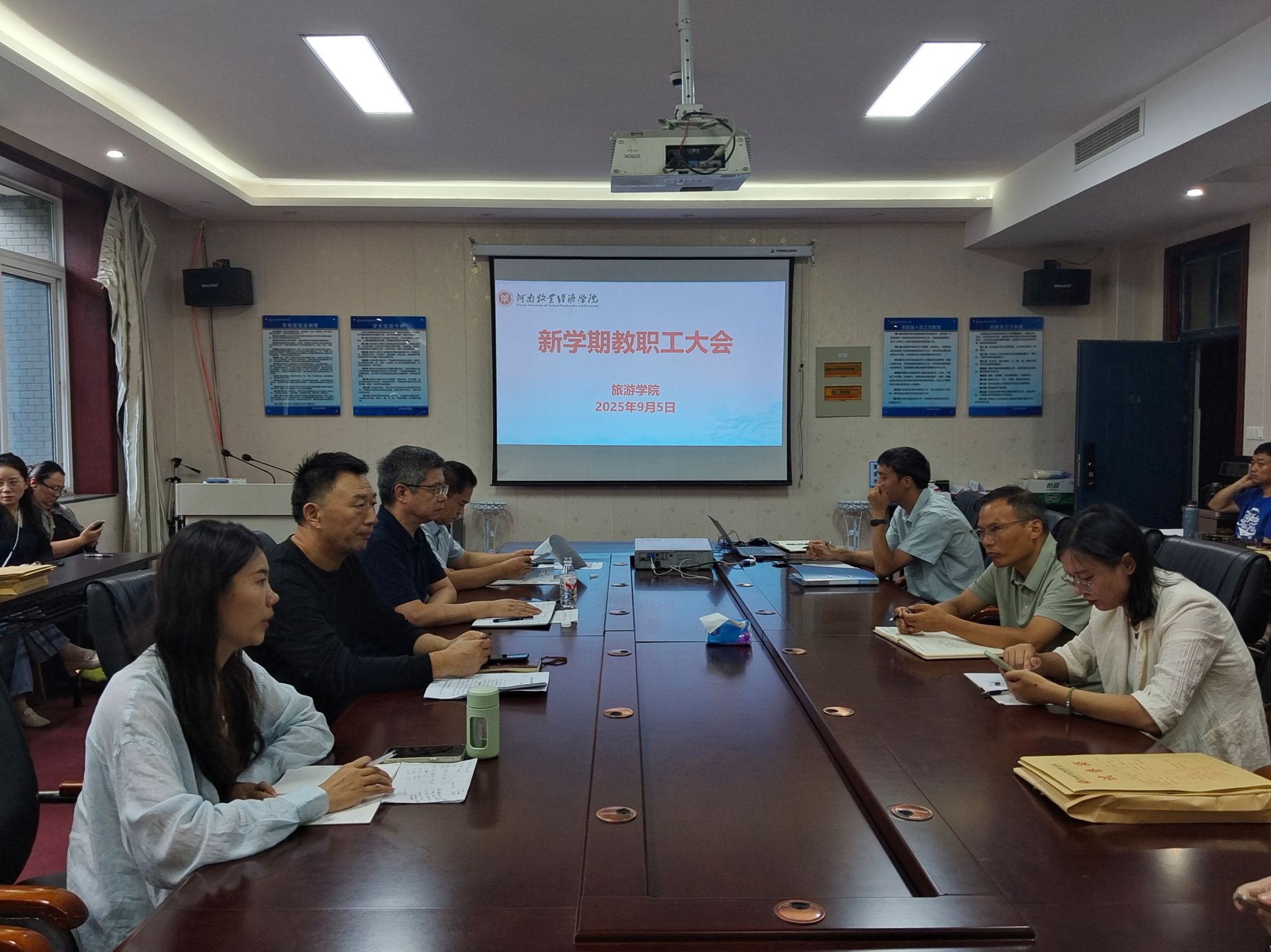 9月5日上午,pg国际电子网站在二号楼C423会议室召开新学期全体教职工大会,传达学校2025年秋季学期中层干部会议精神,安排部署新学期工作。会议由院长王德静主持,全体教职工参会。