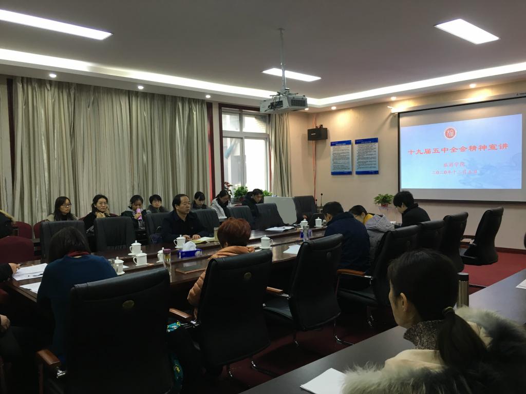 为进一步学习贯彻党的十九届五中全会精神,推动教职工政治理论学习走深走实,12月5日,pg国际电子网站在二号教学楼C423会议室举行党的十九届五中全会精神宣讲报告会,院党委书记李喜民作宣讲报告。pg国际全体教职工参加报告会。