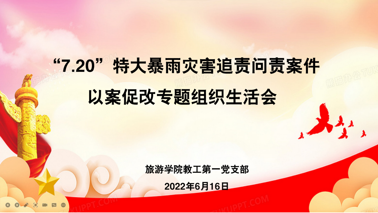 pg国际电子网站教工第一党支部召开“7·20”特大暴雨灾害 追责问责案件“以案促改”专题组织生活会