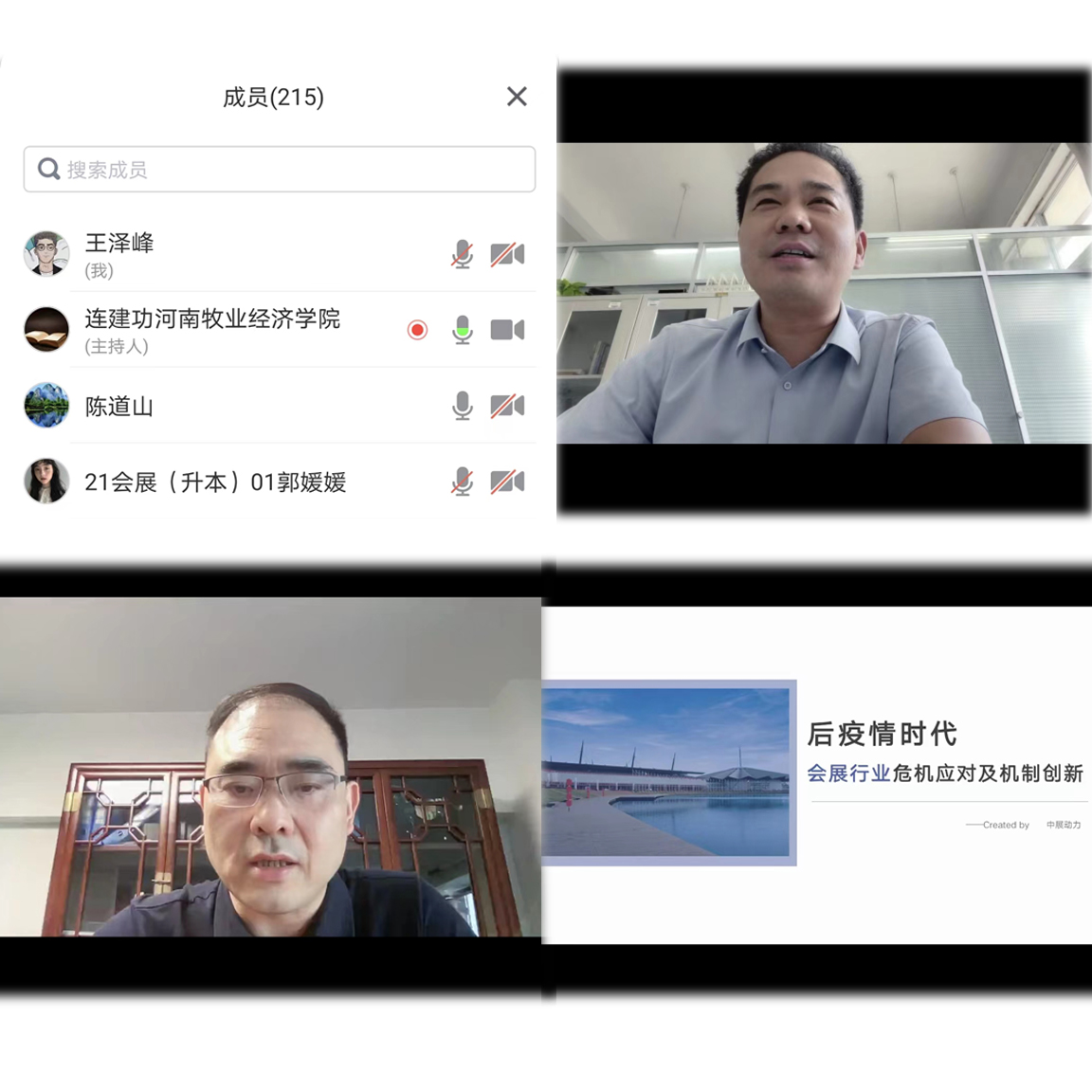 应pg国际电子网站邀请,河南中展动力展览有限公司总经理、郑州市会展行业协会副会长、pg国际电子网站pg国际电子网站专业指导委员会委员宋传强先生,于9月15日下午为pg国际师生做了一场“后疫情时代会展行业危机应对与机制创新”的线上讲座。pg国际电子网站会展经济与管理教研室老师,21、22级会展专业学生认真聆听了讲座,讲座由学院副院长陈道山主持。