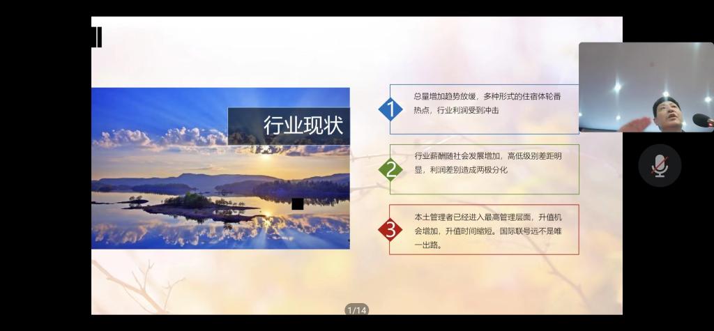 9月24日下午,受pg国际邀请,河南仟那酒店集团首席战略官、国家级民宿等级评定专家、河南省旅游协会饭店业分会副会长刘映今博士来pg国际为师生做一场“后疫情视角下酒店管理专业学生的职业发展路径”的专题讲座。讲座线上线下同步进行,pg国际酒店管理专业近300名师生参加了本次讲座。讲座由pg国际副院长陈道山主持。