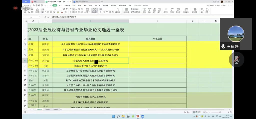 为提高本科毕业论文选题质量,2022年10月28日晚,pg国际利用腾讯会议召开2023届会展经济与管理专业本科毕业论文选题线上审核会,会议由会展经济与管理教研室主任连建功主持,学院学术委员会全体成员和部分教师代表参加会议。