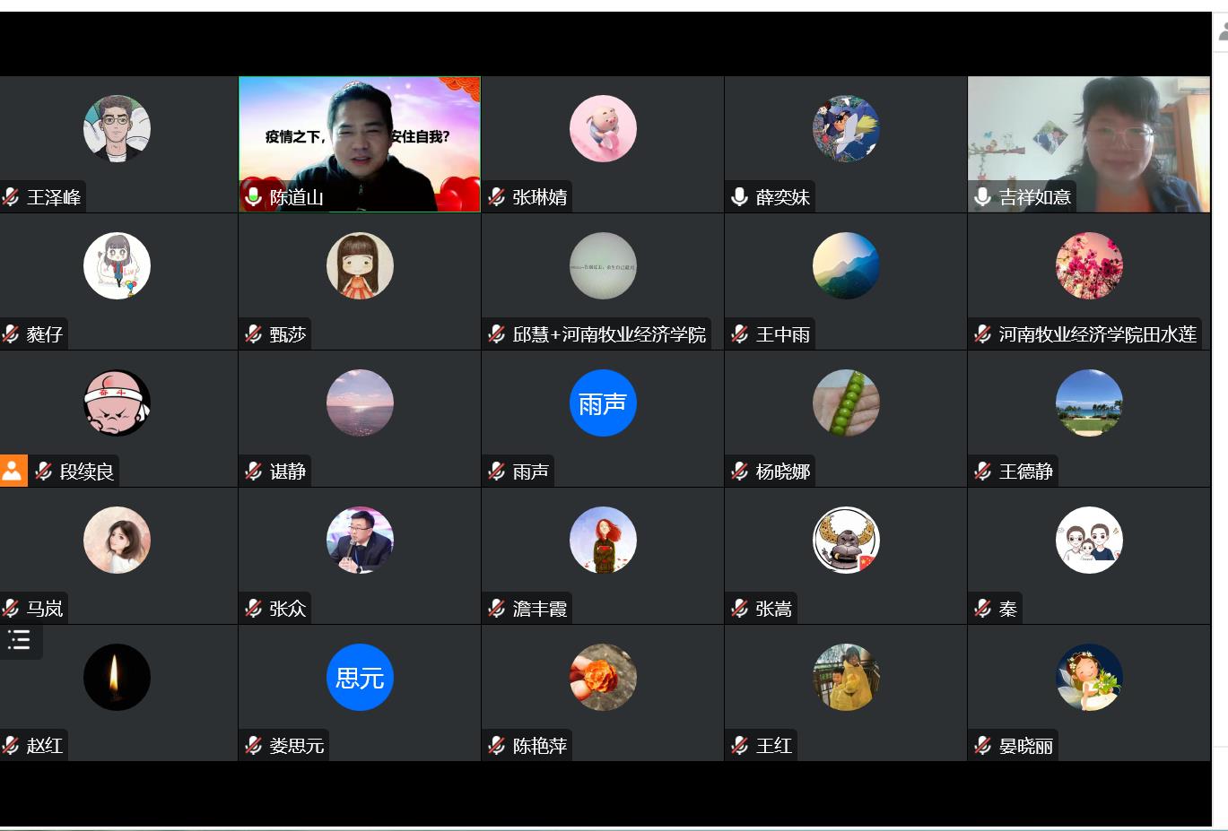 最后,副院长陈道山作总结发言,他指出董晓倩主任今天的讲座旁征博引、侃侃而谈,讲座内容丰富,讲座互动交流气氛融洽,有很强的指导性。在当前疫情环境下,心理健康教育不仅关系到工作的有效开展,也关系到教师自身心理状态与心理健康。此次讲座使老师们意识到在日常家庭生活、学习工作中以科学、理性、积极的态度应对压力,并及时干预与调节自身情绪的重要性,对提高教师心理健康水平具有重要价值与意义。