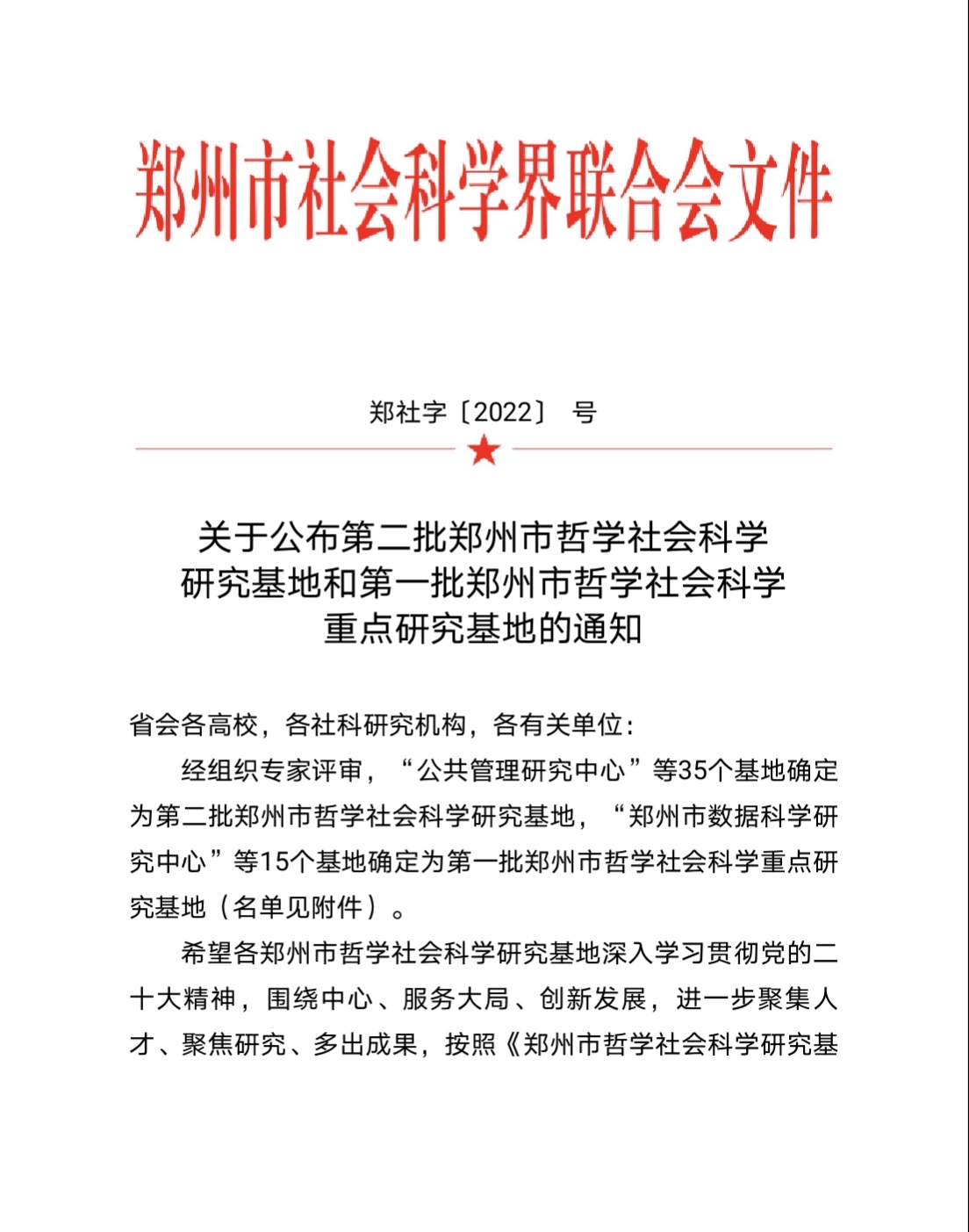 12月2日,郑州市社科联公布了第二批郑州市哲学社会科学研究基地和第一批郑州市哲学社会科学重点研究基地的名单,pg国际乡村民宿产业研究中心入围第二批郑州市哲学社会科学研究基地名单、乡村旅游与休闲农业研究中心入围第一批郑州市哲学社会科学重点研究基地名单。
