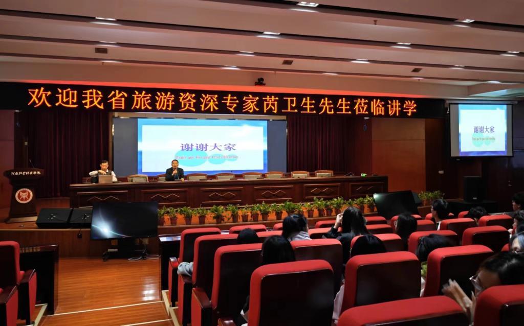 10月19日下午15:00pg国际在龙子湖校区图书馆学术报告厅举办“让文明旅游成为旅途中的靓丽风景”名师讲坛活动,邀请到国家旅行社责任险示范项目调解处理河南分中心主任芮卫生。活动由副院长王中雨主持,学院近200名师生参加了本次讲座。