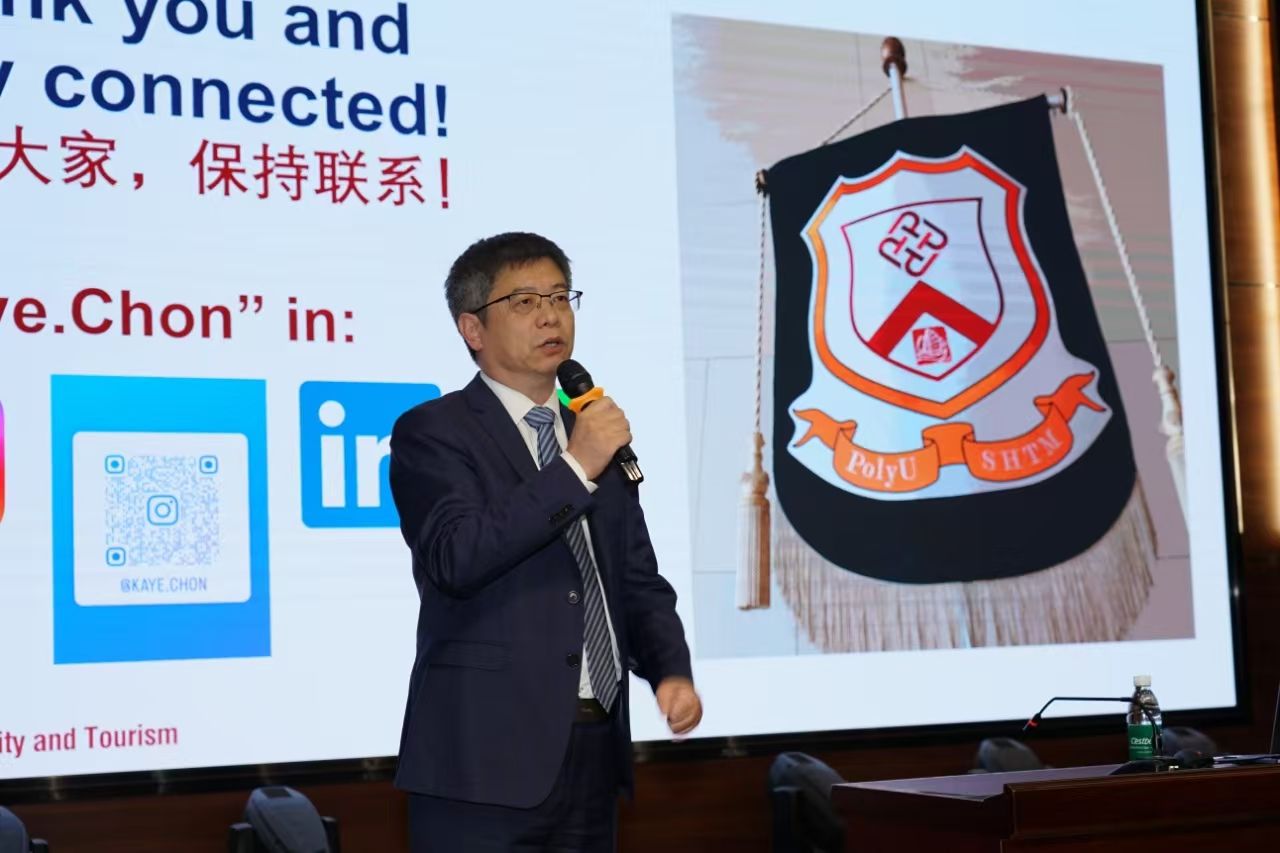 晚上7点,Kaye Chon教授在合100报告厅进行《酒店与旅游创新及领导艺术》学术报告。pg国际电子网站党委书记权太举、院长王德静出席,pg国际电子网站师生共同参与。