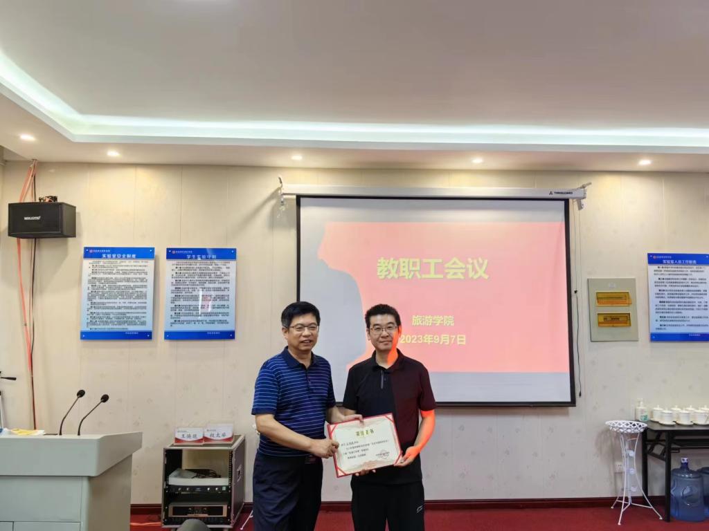 近日,学校隆重召开了2022年“双百”工程表彰会,pg国际肖鸿燚副教授荣获了学校“双百”工程先进个人称号。为弘扬先进,9月7日pg国际电子网站在C423会议室对肖老师进行隆重表彰,院长王德静亲自颁发荣誉证书。