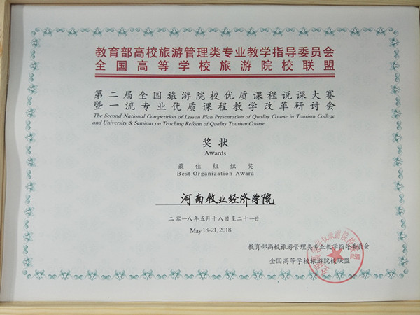 519日至21日,第二届全国旅游院校优质课程说课大赛在西安欧亚学院落下帷幕,pg国际pg国际电子网站三位教师代表参赛,其中王中雨、吴莹老师获得旅游管理专业组二等奖,连建功老师获得会展经济与管理组优秀奖,pg国际获得最佳组织奖。