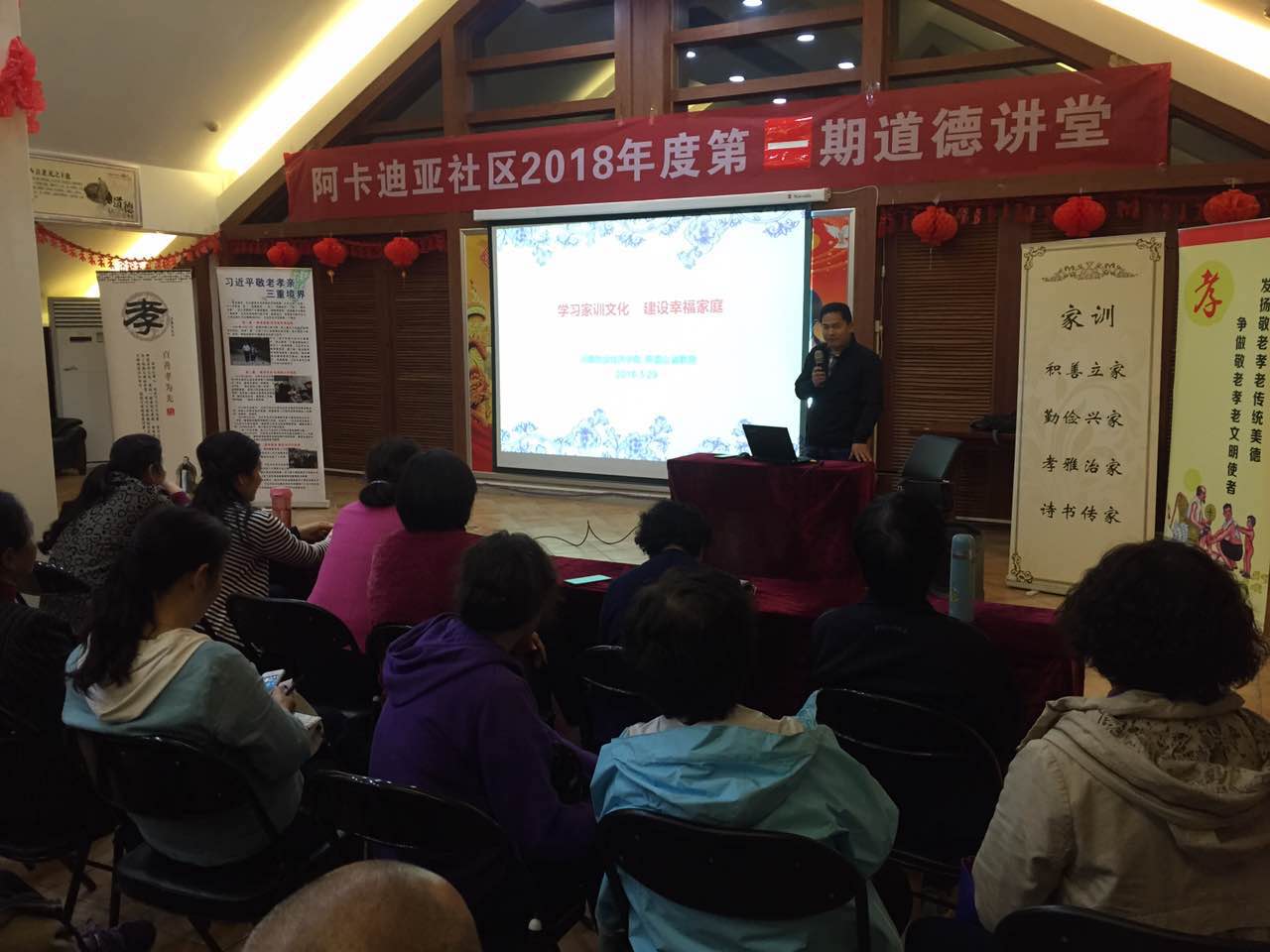 为了弘扬优秀民族传统文化,践行社会主义核心价值观,根据学校“学习贯彻十九大 文明单位社区行”活动计划2018年3月29日下午,pg国际电子网站组织老师走进阿卡迪亚社区,以“家风家教”为主题,为社区居民带去了一场精神盛宴。