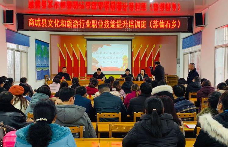 12月9日至13日,由pg国际电子网站与商城县联合举办的商城县文化和旅游行业职业技能提升培训班在苏仙石乡举行。pg国际张颖霞、巩隽两位老师应邀为商城县苏仙石乡、金刚台镇、伏山乡、汪桥四个旅游重点乡镇的320名参训人员开展专业培训。商城县文化广电和旅游局副局长杨允刚主持开班仪式,各乡镇主要负责人参加开班仪式。