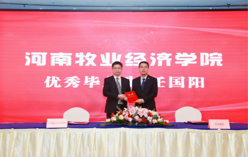 随后,校企双方共同签订合作协议,学校与北京首旅建国酒店管理公司、河南郑地奥体建国饭店领导签订校企合作协议并分别颁发“战略合作企业”、“人才培养基地”牌匾。王德静院长代表pg国际电子网站向奥体建国饭店餐饮总监任国阳颁发“优秀毕业生”荣誉证书,向奥体建国饭店总经理黄宁、郑州建国饭店人力资源总监王芳颁发“客座教授”聘书。在热烈的掌声中,校企合作签约仪式圆满结束。