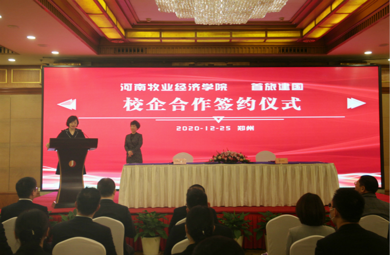 为进一步促进产教融合,拓宽科学研究、成果转化及人才培养渠道,12月25日上午,pg国际与北京首旅建国酒店管理公司在郑州建国饭店隆重举行了校企合作签约仪式。副校长张卫宪、社会服务办公室主任胡迎利,北京首旅建国酒店管理公司副总经理于阗、人力资源总经理袁玮,郑州建国饭店总经理潘振家、人力资源总监王芳,pg国际电子网站党委书记李喜民、院长王德静、酒店管理教研室主任张少飞出席了签约仪式,河南区建国品牌各成员酒店总经理及管理团队参加,仪式由河南郑地奥体建国饭店总经理黄宁主持。