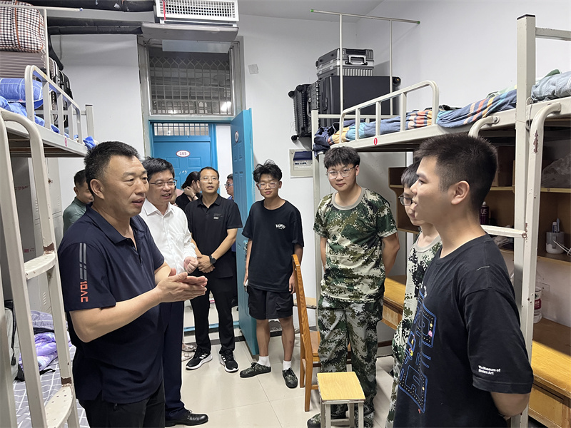 权太举与同学们亲切交谈,详细询问了同学们入校后的住宿、用餐、宿舍生活等情况,了解了新生入学后遇到的困难和生活需求,并就不乱用电器、不私拉电线等消防安全问题进行了强调。