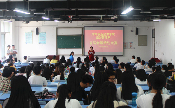 2017616日下午,旅游管理系在龙子湖校区合401举办首届会展策划大赛,系党总支书记李喜民、系教学副主任马海燕、党总支副书记陈明、会展教研室全体老师、部分辅导员老师及会展策划与管理专业学生近200人参加了本次活动。