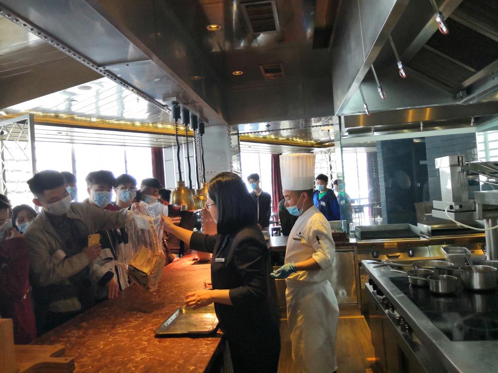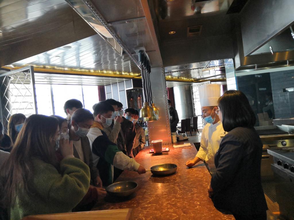 JW万豪酒店的精心安排下,pg国际学生参观调研酒店厨房及餐饮区域酒店大厨向在场学生介绍了酒店厨房设施设备的使用带领学生了解了酒店厨房的全套工作流程参观后,酒店大厨就酒店厨房从业人员的基本情况和素质要求与pg国际学生展开了深入交流。