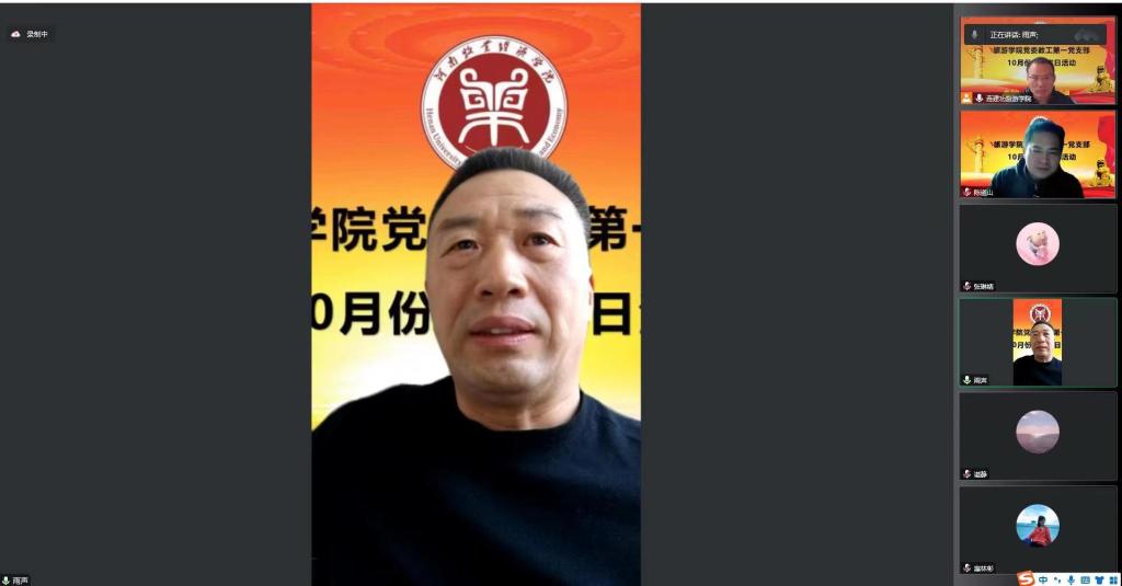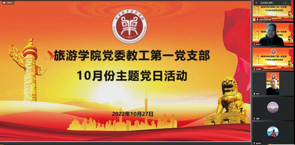 根据pg国际电子网站党委组织部《关于开展2022年10月份主题党日活动的通知》文件精神,10月27日下午,pg国际电子网站教工第一党支部10份主题党日活动通过腾讯会议顺利开展。学院党委书记权太举和支部全体党员参与学习和研讨。