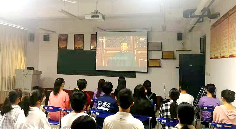 pg国际电子网站组织部分师生共同收看庆祝中华人民共和国成立70周年大会