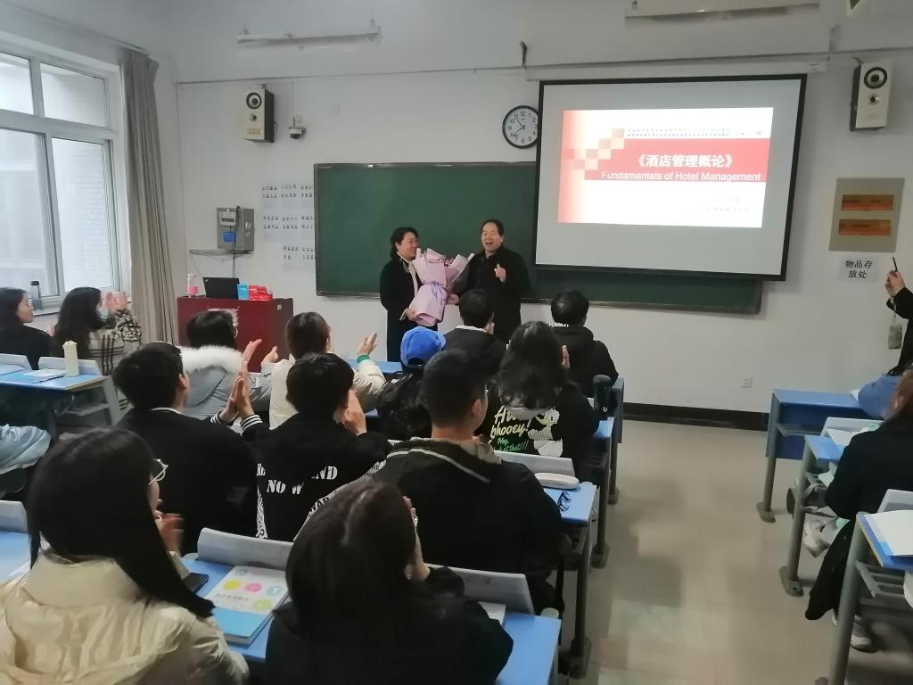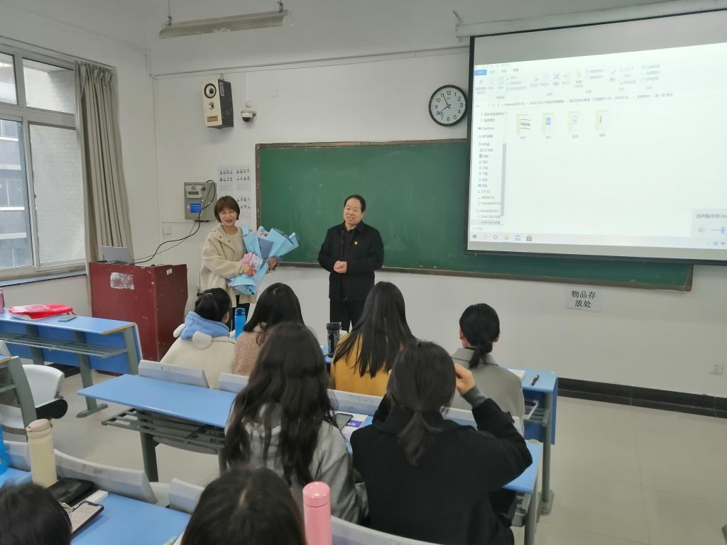 3月8日一早,在“三八妇女节”到来之际,pg国际电子网站党委书记李喜民、正处级组织员黄琴、赵红、副书记陈明、副院长王中雨、会展教研室主任连建功一行深入教室、院团委,向工作在教育第一线的女教师代表们送去节日的祝福和问候。
