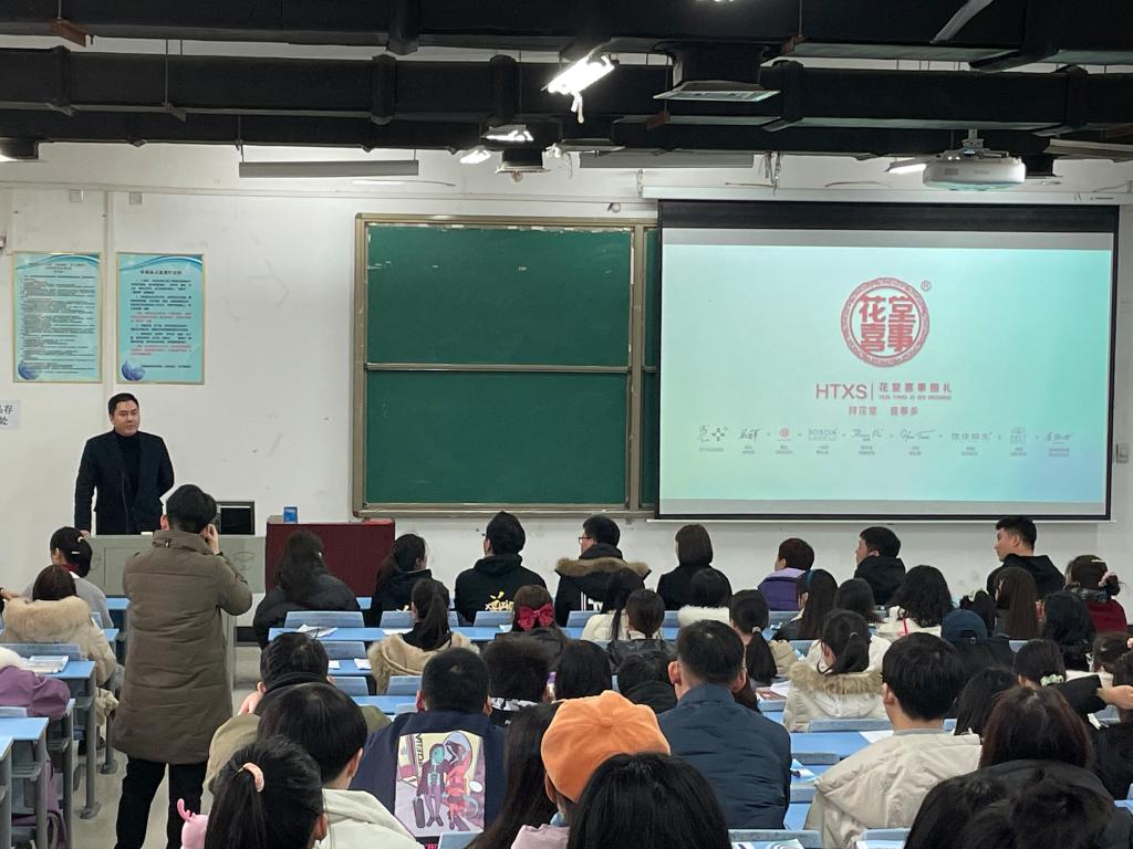 座谈结束之后,赵亚伟先生携团队在1号教学楼合501与会展经济与管理的学生开展了一场别开生面的主题讲座,讲座内容生动,紧贴行业,满满的干货得到学生们的阵阵掌声。赵亚伟先生表示欢迎pg国际电子网站的师生随时走进花堂喜事指导、参观与交流。